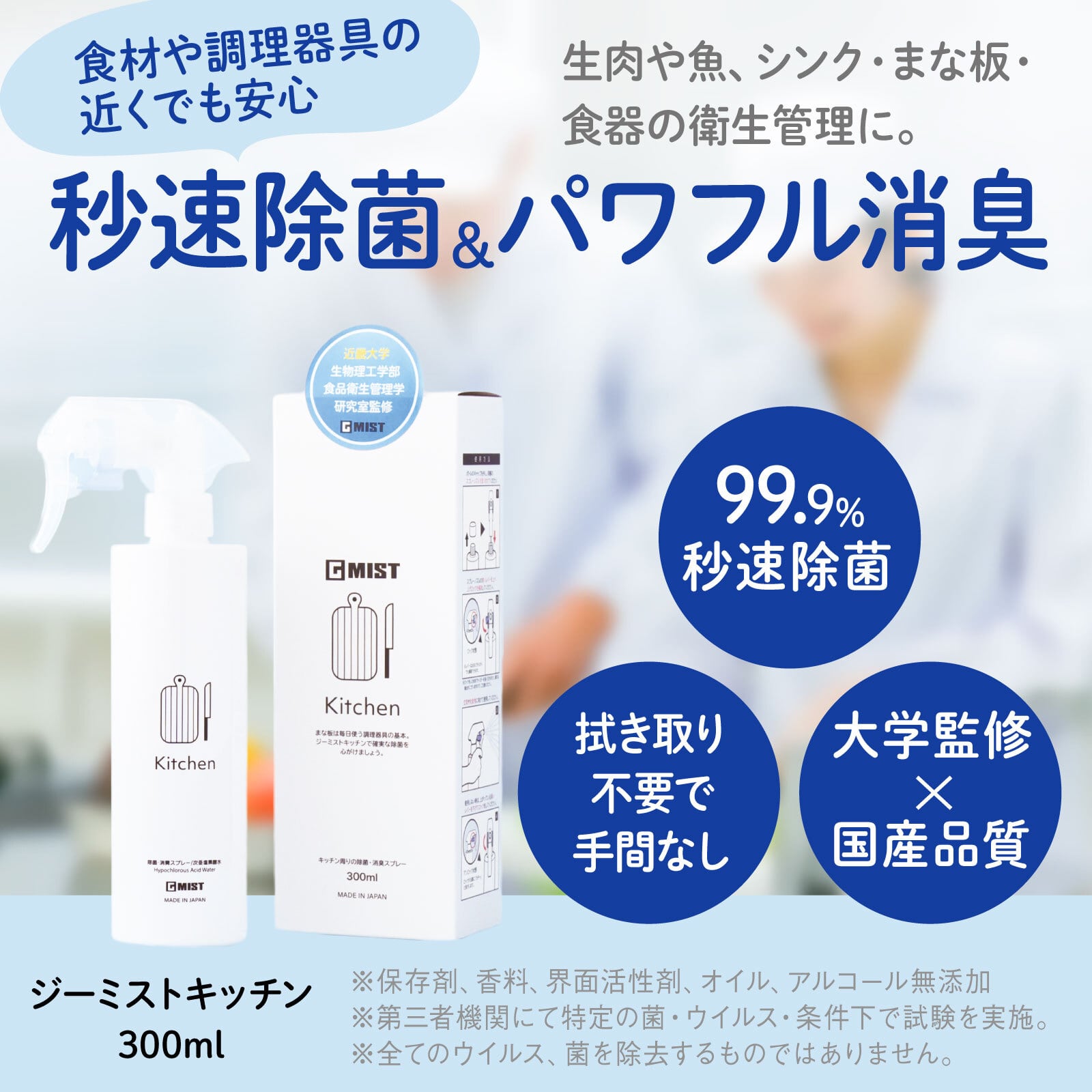 ジーミストキッチンは、キッチンでの使用を想定して開発された、除菌消臭剤です。