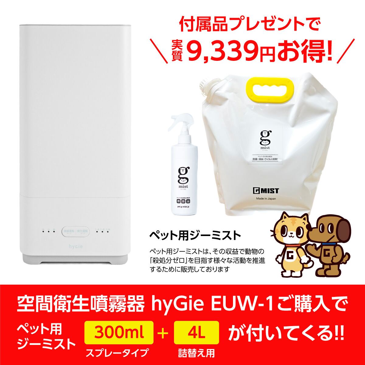 空間衛生噴霧器 hyGie(ハイジー)EUW-1 ペット用ジーミスト付